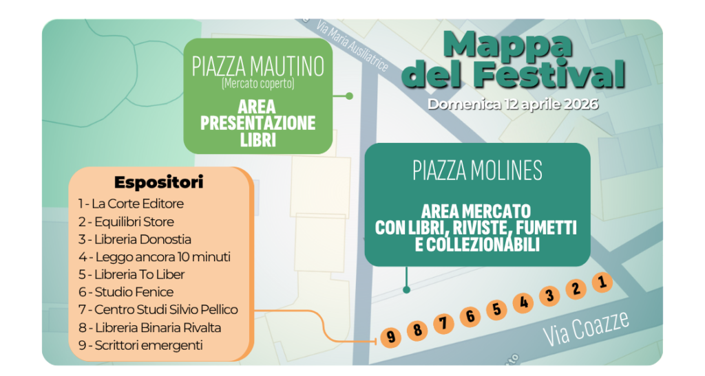 Librerie, case editrici, bancarelle, incontri con autori e spettacoli: domenica 12 aprile, la Fiera del Libro del “Festival delle Narrazioni” a Giaveno sarà un vero e proprio viaggio nel mondo dei libri! Venite a curiosare tra gli stand, a scoprire le novità editoriali e a incontrare i vostri autori preferiti. Ingresso libero. Vi aspettiamo!